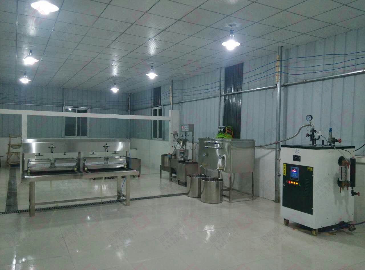 加工豆腐有六道工序:清洗浸泡(夏天4個(gè)小時(shí),冬天6個(gè)小時(shí),目的是更大限度的確保出漿率)—磨漿分離(傳統(tǒng)工藝需要人工篩漿,而機(jī)器是采用漿渣自動(dòng)分離,減輕了人力,極大提高生產(chǎn)效率)—高溫煮漿(豆?jié){自動(dòng)流入煮漿桶,通過蒸汽加熱煮熟)—點(diǎn)漿(豆?jié){煮開后,再加入凝固劑成型)—壓榨(擠出水份)—成品豆腐。