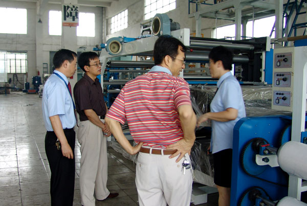 杜黨勇書記一行在公司黨支部書記、副總經(jīng)理王聲躍、副總經(jīng)理陳蓓的陪同下參觀了公司廠容廠貌和生產(chǎn)車間,在參觀過程中,杜書記不時詳細詢問公司的生產(chǎn)經(jīng)營情況,并仔細了解各類機器的性能特點,當來到公司深入學(xué)習(xí)實踐科學(xué)發(fā)展觀活動的宣傳欄時,杜書記不禁駐足認真欣賞起來,連說:很好,辦的不錯。