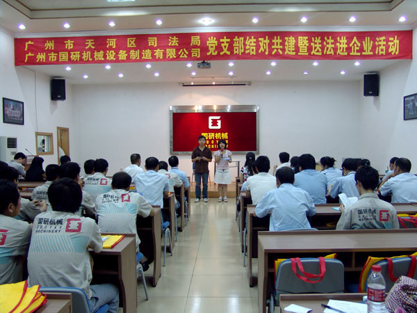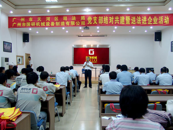 9月7日下午,廣州市天河區(qū)司法局黨支部和文教工作隊(duì)一行18人在局長羅育輝和副局長曾曉云的帶領(lǐng)下,來到廣州市國研機(jī)械設(shè)備制造有限公司舉行黨支部結(jié)對共建暨送法進(jìn)企業(yè)活動。