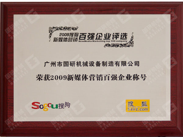 新年伊始,廣州市國研機械設備制造有限公司再度傳來喜訊:在搜狗與搜狐財經(jīng)、搜狐IT共同舉辦的“2009搜狗新媒體營銷百強企業(yè)評選”活動中,廣州市國研機械設備制造有限公司憑借出色的網(wǎng)絡營銷案例成功晉級,與各行業(yè)眾多一線品牌企業(yè)一同榮獲“2009新媒體營銷百強企業(yè)”稱號。